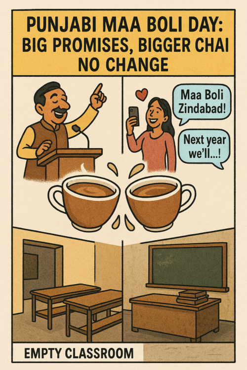 ਹਰ ਸਾਲ ਦੁਨੀਆ ਭਰ ਦੇ ਲੋਕ ਪੰਜਾਬੀ ਮਾਂ ਬੋਲੀ ਦਿਹਾੜਾ ਵੱਡੇ ਜੋਸ਼, ਸ਼ੋਰ-ਸ਼ਰਾਬੇ ਅਤੇ ਭਾਵੁਕ ਸੋਸ਼ਲ ਮੀਡੀਆ ਪੋਸਟਾਂ ਨਾਲ ਮਨਾਉਂਦੇ ਹਨ। ਇਸ ਦਿਨ ਹਰ ਬੰਦਾ ਕਵੀ, ਦਰਸ਼ਨਿਕ ਅਤੇ ਮਾਂ ਬੋਲੀ ਦਾ ਸਭ ਤੋਂ ਵੱਡਾ ਰੱਖਿਆ ਕਰਤਾ ਬਣ ਜਾਂਦਾ ਹੈ। ਫੇਸਬੁੱਕ ਤੇ ਲੰਮੇ ਲੇਖ, ਇੰਸਟਾਗ੍ਰਾਮ ਤੇ ਦਿਲ ਵਾਲੇ ਇਮੋਜੀ, ਅਤੇ ਵਟਸਐਪ ਤੇ ਸਟੇਟਸ—ਸਭ ਨਾਲ ਇਹ ਸਾਬਤ ਕੀਤਾ ਜਾਂਦਾ ਹੈ ਕਿ ਪੰਜਾਬੀ ਉਹਨਾਂ ਦਾ ਮਾਣ, ਮੱਥਾ ਅਤੇ ਜੀਵਨ ਹੈ। ਪਰ ਦੂਜੇ ਹੀ ਦਿਨ ਉਹੀ ਜੋਸ਼ ਓਦਾਂ ਗਾਇਬ ਹੋ ਜਾਂਦਾ ਹੈ, ਜਿਵੇਂ ਬੱਸ ’ਚੋਂ ਅਚਾਨਕ ਖਾਲੀ ਸੀਟ ਗਾਇਬ ਹੋ ਜਾਂਦੀ ਹੈ। ਸਮਾਗਮ ਵੱਡਾ ਹੁੰਦਾ ਹੈ, ਪਰ ਅੱਗੇ ਦੀ ਕਾਰਵਾਈ ਸ਼ੂਨ્ય।