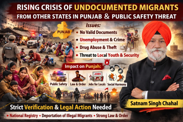 ਪੰਜਾਬ ਵਿੱਚ ਬਾਹਰੀ ਸੂਬਿਆਂ ਤੋਂ ਆਏ ਗ਼ੈਰ-ਦਸਤਾਵੇਜ਼ੀ ਪ੍ਰਵਾਸੀਆਂ ਅਤੇ ਜਨਤਕ ਸੁਰੱਖਿਆ ਦਾ ਵਧਦਾ ਸੰਕਟ