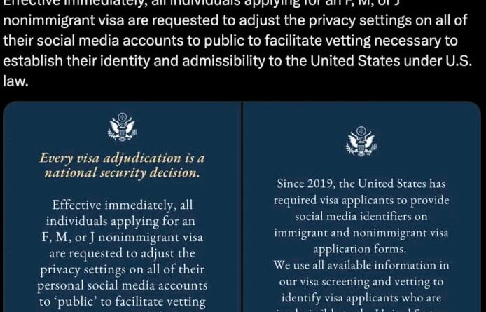 Read Moreਅਮਰੀਕੀ ਦੂਤਾਵਾਸ ਨੇ ਵਿਦਿਆਰਥੀ ਅਤੇ ਐਕਸਚੇਂਜ ਵਿਜ਼ਟਰ ਵੀਜ਼ਾ ਲਈ ਅਰਜ਼ੀ ਦੇਣ ਵਾਲਿਆਂ ਲਈ ਇੱਕ ਨਵੀਂ ਦਿਸ਼ਾ-ਨਿਰਦੇਸ਼ ਦਾ ਐਲਾਨ ਕੀਤਾ ਹੈ।