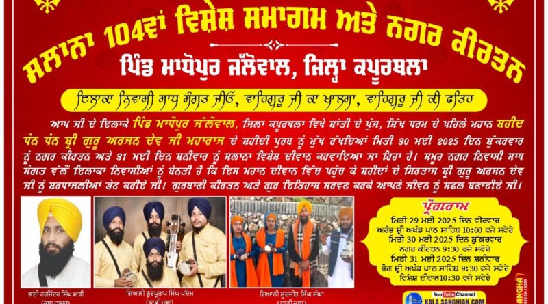 Read Moreਮਾਧੋਪੁਰ(ਕਾਲਾ ਸੰਘਿਆਂ) ਇਥੋਂ ਪਰਾਪਤ ਹੋਈ ਜਾਣਕਾਰੀ ਅਨੁਸਾਰ ਹਰ ਸਾਲ ਸਾਲ ਵਾਂਗ ਗੁਰੂਦੁਆਰਾ ਸਿੰਘ ਸਭਾ ਪਰਬੰਧਕ ਕਮੇਟੀ ਤੇ ਐਨ.ਆਰ.ਆਈ ਪਰਿਵਾਰਾਂ ਵਲੋਂ